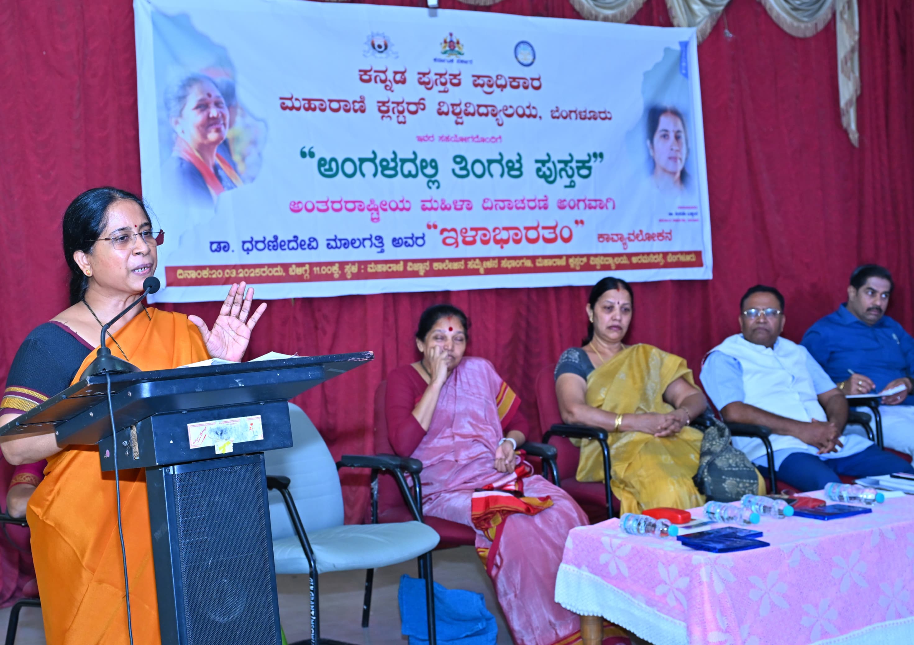 ಅವರು ಇಂದು ಕನ್ನಡ ಪುಸ್ತಕ ಪ್ರಾಧಿಕಾರವು ಅಂತರರಾಷ್ಟ್ರೀಯ ಮಹಿಳಾ ದಿನಾಚರಣೆಯ ಅಂಗವಾಗಿ ಬೆಂಗಳೂರಿನ ಮಹಾರಾಣಿ ಕ್ಲಸ್ಟರ್ ವಿಶ್ವವಿದ್ಯಾಲಯದ ಸಹಯೋಗದೊಂದಿಗೆ ಆಯೋಜಿಸಿದ್ದ “ಅಂಗಳದಲ್ಲಿ ತಿಂಗಳ ಪುಸ್ತಕ” ಕಾರ್ಯಕ್ರಮದಲ್ಲಿ ಡಾ. ಧರಣೀದೇವಿ ಮಾಲಗತ್ತಿ ಅವರ “ಇಳಾಭಾರತಂ” ಕೃತಿಯನ್ನು ಕುರಿತು ಮಾತನಾಡುತ್ತಿದ್ದರು.
