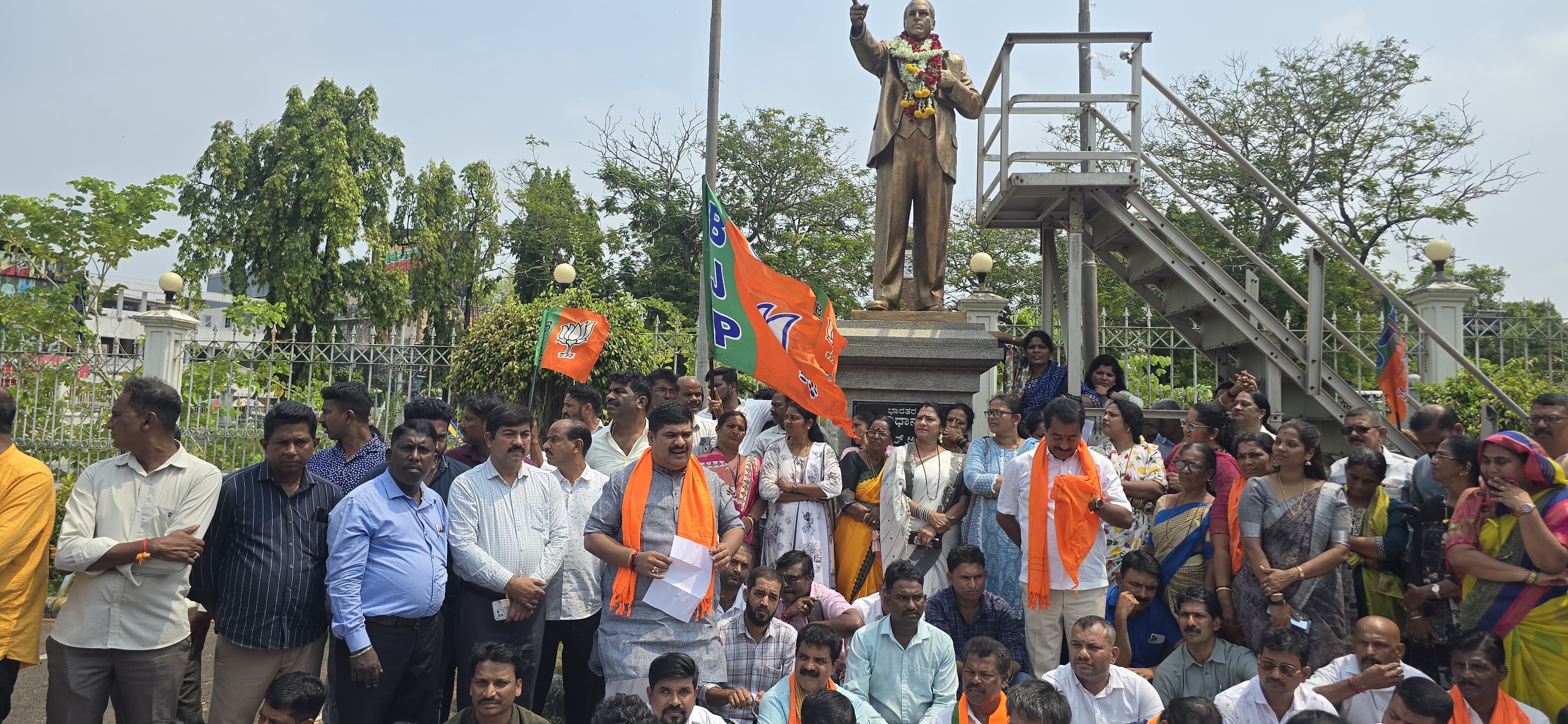 ದಕ್ಷಿಣ ಕನ್ನಡ ಜಿಲ್ಲಾ ಬಿಜೆಪಿ ನೇತೃತ್ವದಲ್ಲಿ ಪುರಭವನದ ಮುಂಭಾಗದಲ್ಲಿರುವ ಅಂಬೇಡ್ಕರ್ ಪ್ರತಿಮೆ ಬಳಿ ನಡೆದ ಪ್ರತಿಭಟನೆಯಲ್ಲಿ ಮಾತನಾಡಿದ ಅವರು, ಸ್ವಾತಂತ್ರ್ಯ ಬಂದ ನಂತರ ಮುಸ್ಲಿಂ ಲೀಗ್ ಕೂಡ ಇಂತಹದೇ ಬೇಡಿಕೆಯನ್ನಿಟ್ಟಿತ್ತು. ಆಗ ಬಾಬಾ ಸಾಹೇಬ್ ಅಂಬೇಡ್ಕರ್ ಮತ್ತು ಸರ್ದಾರ್ ಪಟೇಲರು ಅದನ್ನು ಖಂಡ ತುಂಡವಾಗಿ ವಿರೋಧಿಸಿದ್ದರು. ಅಂತಹ ಮಹಾನ್ ನಾಯಕರ ಮಾತನ್ನೇ ಧಿಕ್ಕರಿಸಿ, ಇದೀಗ ಸಂವಿಧಾನವನ್ನೇ ಬದಲಾಯಿಸಲು ಹೊರಟಿದೆ ಕಾಂಗ್ರೆಸ್. ಮತ್ತೆ ಸಂವಿಧಾನವನ್ನು ಉಳಿಸುವ ಬಗ್ಗೆ ಬೊಗಳೆ ಬಿಡುತ್ತಾರೆ. ಇದು ಅತ್ಯಂತ ಗಂಭೀರವಾದ ವಿಷಯವಾಗಿದ್ದು ಕಾಂಗ್ರೆಸ್ಸಿನ ಸಾವಿರ ಜನ ಬಂದರೂ ಸಂವಿಧಾನದ ಒಂದಿಂಚನ್ನು ಬದಲಾಯಿಸಲು ಸಾಧ್ಯವಿಲ್ಲ ಎಂದರು.