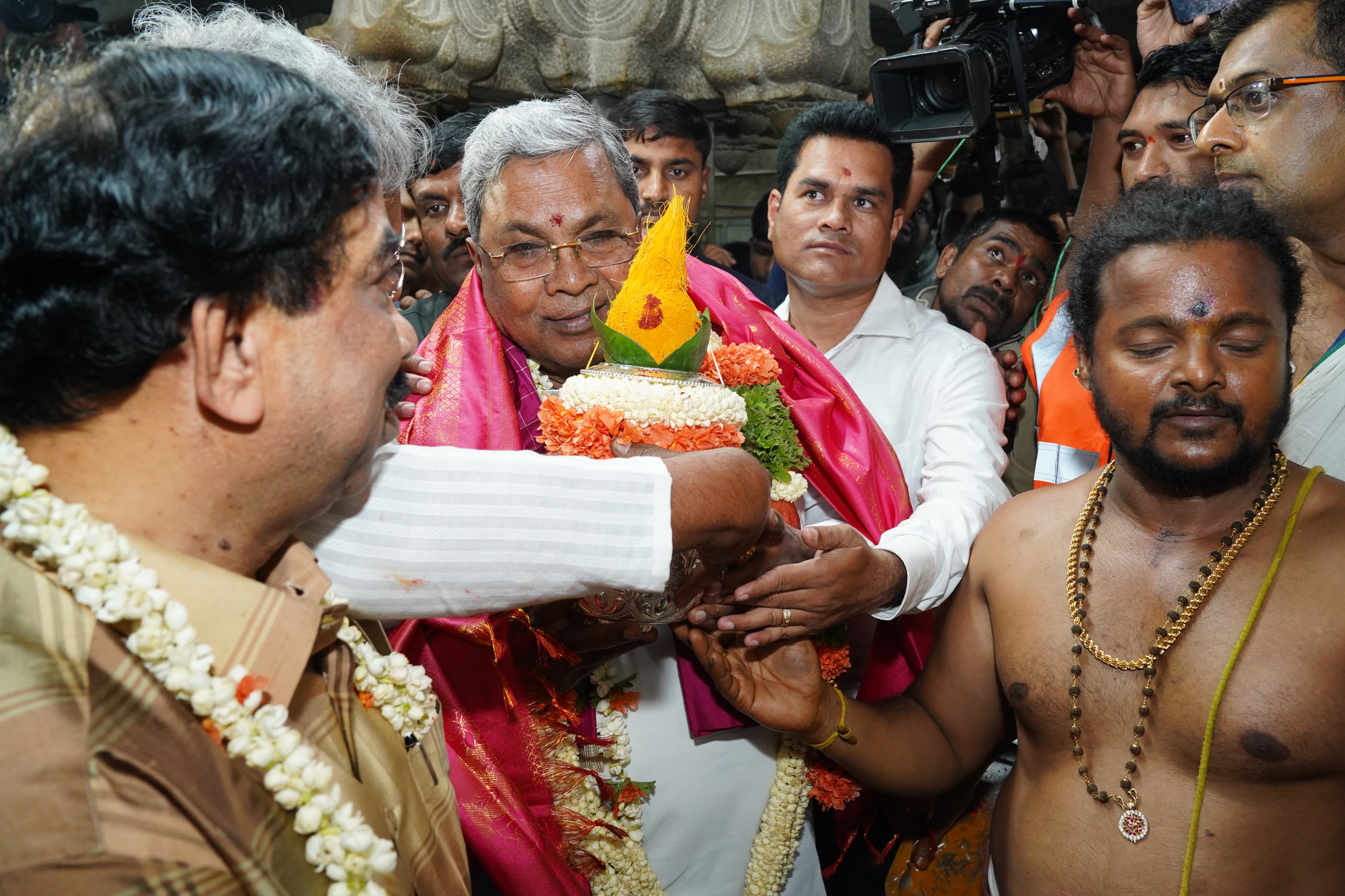 ಮುಖ್ಯಮಂತ್ರಿ ಸಿದ್ದರಾಮಯ್ಯ ಅವರು ತಿಗಳರಪೇಟೆಯ ಶ್ರೀ ಧರ್ಮರಾಯಸ್ವಾಮಿ ದೇವಸ್ಥಾನಕ್ಕೆ ಭೇಟಿ ನೀಡಿ ಪೂಜೆ ಸಲ್ಲಿಸಿ, ಕರಗ ಶಕ್ತ್ಯೋತ್ಸವ ಮಹಾರಥೋತ್ಸವಕ್ಕೆ ಶುಭ ಕೋರಿ ನಮನ ಸಲ್ಲಿಸಿದರು.