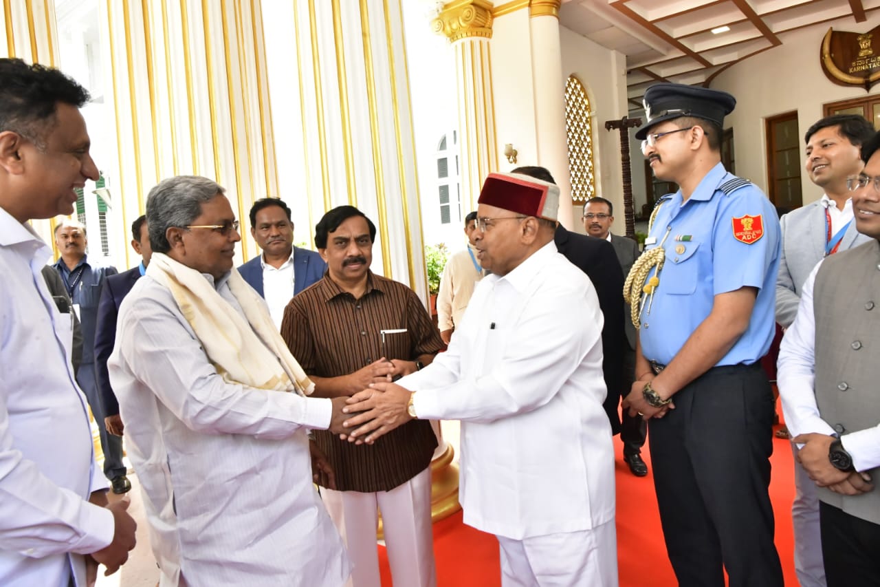 ಕರ್ನಾಟಕದ ಗೌರವಾನ್ವಿತ ರಾಜ್ಯಪಾಲರಾದ ಥಾವರ್ ಚಂದ್ ಗೆಹ್ಲೋಟ್ ಹಾಗೂ ಸನ್ಮಾನ್ಯ ಮುಖ್ಯಮಂತ್ರಿ ಸಿದ್ದರಾಮಯ್ಯ ಅವರು ಮಾಲ್ಡೀವ್ಸ್ ಅಧ್ಯಕ್ಷ ಡಾ. ಮೊಹಮ್ಮದ್ ಮುಯಿಜ್ಜು ಮತ್ತು ಪ್ರಥಮ ಮಹಿಳೆ ಸಾಜಿದಾ ಮೊಹಮ್ಮದ್ ಅವರನ್ನು ಹೂಗುಚ್ಚ ನೀಡಿ ಆತ್ಮೀಯವಾಗಿ ಸ್ವಾಗತಿಸಿದರು.