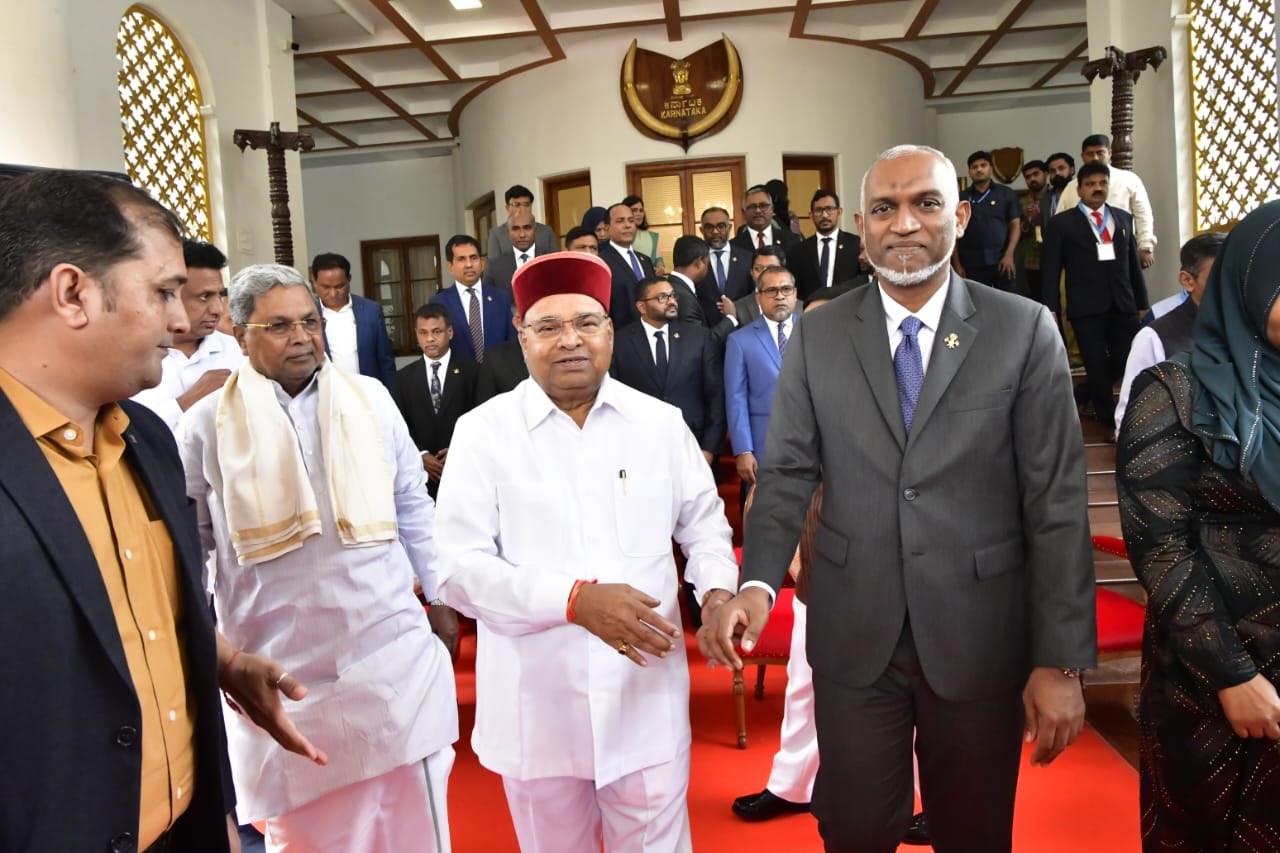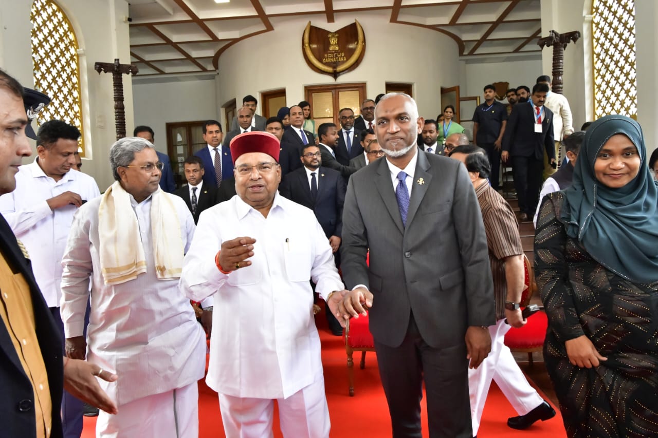ಮಾಲ್ಡೀವ್ಸ್ ಅಧ್ಯಕರಾದ ಡಾ. ಮೊಹಮ್ಮದ್ ಮುಯಿಜ್ಜು ಮಾತನಾಡಿ, ಭಾರತಕ್ಕೆ ಭೇಟಿ ನೀಡಲು ಆಹ್ವಾನ ನೀಡಿದಂತಹ ಗೌರವಾನ್ವಿತ ರಾಷ್ಟ್ರಪತಿ, ಪ್ರಧಾನಿ ಅವರಿಗೆ ಧನ್ಯವಾದಗಳನ್ನು ಸಲ್ಲಿಸುತ್ತೇನೆ. ಹಾಗೆಯೇ, ಬೆಂಗಳೂರಿನಲ್ಲಿ ಆತ್ಮೀಯವಾಗಿ ಬರಮಾಡಿಕೊಂಡು, ಆತಿಥ್ಯ ನೀಡಿದ ರಾಜ್ಯಪಾಲರಿಗೆ ಹಾಗೂ ಮುಖ್ಯಮಂತ್ರಿಗಳಿಗೂ ಧನ್ಯಾವಾದಗಳನ್ನು ಸಲ್ಲಿಸುತ್ತೇನೆ. ಭಾರತದಲ್ಲಿ ಬಹಳ ಹೆಸರು ಮಾಡಿರುವ ಕರ್ನಾಟಕ ರಾಜ್ಯಕ್ಕೆ ಅದರಲ್ಲೂ ಬೆಂಗಳೂರಿಗೆ ಭೇಟಿ ನೀಡಿರುವುದು ಬಹಳ ಖುಷಿಯಾಗಿದೆ. ಕರ್ನಾಟಕದಲ್ಲಿ ಮಾಲ್ಡೀವ್ ವಿದ್ಯಾರ್ಥಿಗಳು ವಿದ್ಯಾಭ್ಯಾಸ ಮಾಡುತ್ತಿದ್ದಾರೆ. ಪ್ರವಾಸೋದ್ಯಮ ಅಭಿವೃದ್ಧಿಯಲ್ಲಿ ಸಹಕಾರ ನೀಡಲಾಗುವುದು ಎಂದರು.