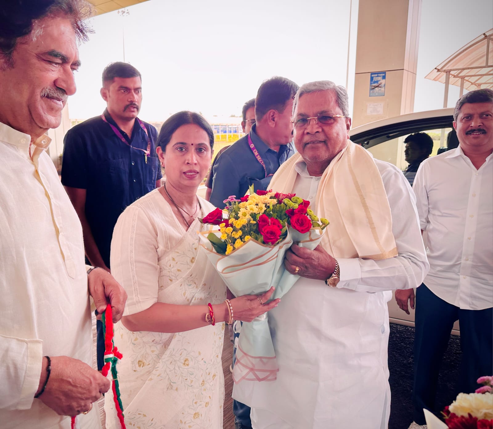 ಬೆಳಗಾವಿಗೆ ಆಗಮಿಸಿದ ಮುಖ್ಯಮಂತ್ರಿ ಸಿದ್ದರಾಮಯ್ಯ ಅವರನ್ನು ಸಾಂಬ್ರಾ ವಿಮಾನ ನಿಲ್ದಾಣದಲ್ಲಿ ಮಹಿಳಾ ಮತ್ತು ಮಕ್ಕಳ ಅಭಿವೃದ್ಧಿ ಇಲಾಖೆ ಸಚಿವರಾದ ಲಕ್ಷ್ಮೀ ಹೆಬ್ಬಾಳಕರ್ ಅವರು ಸ್ವಾಗತಿಸಿದರು.