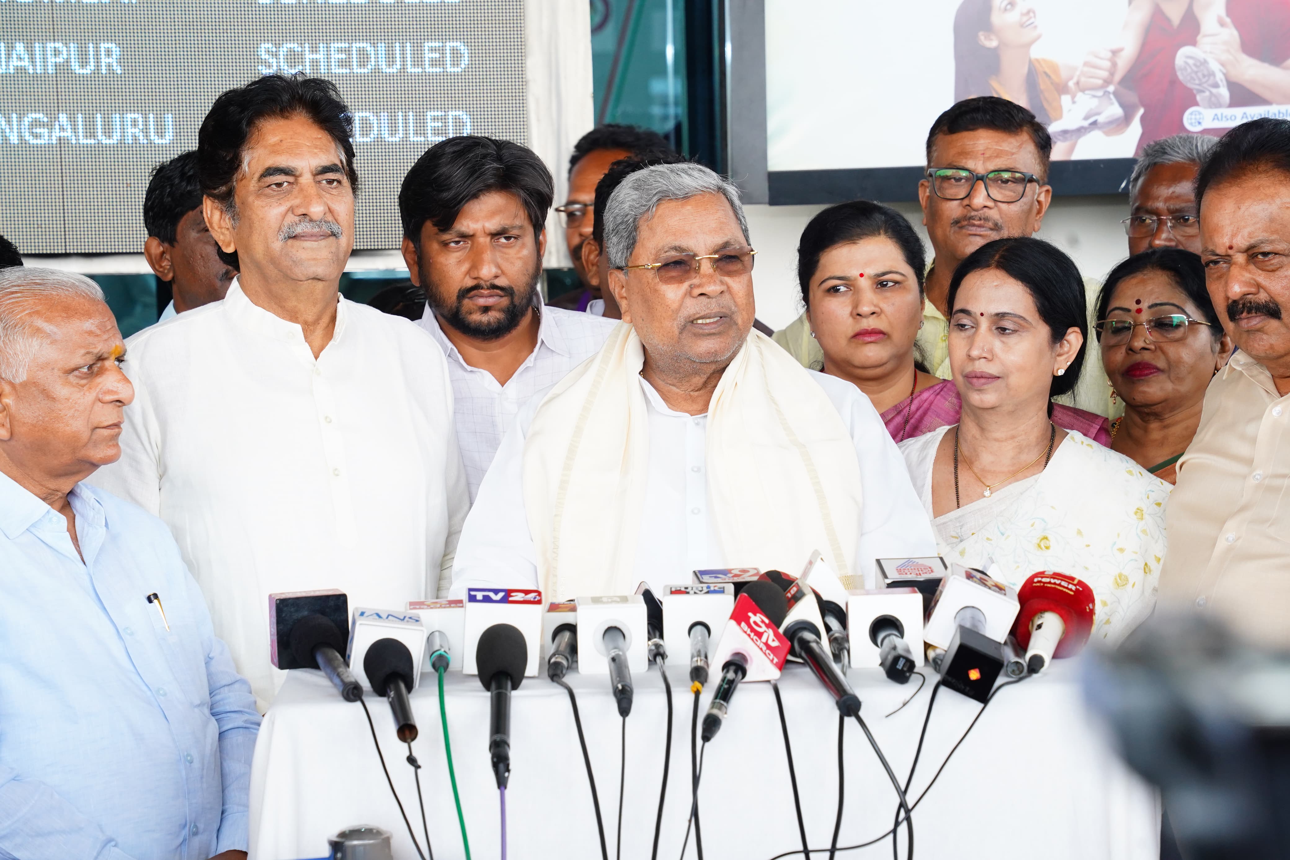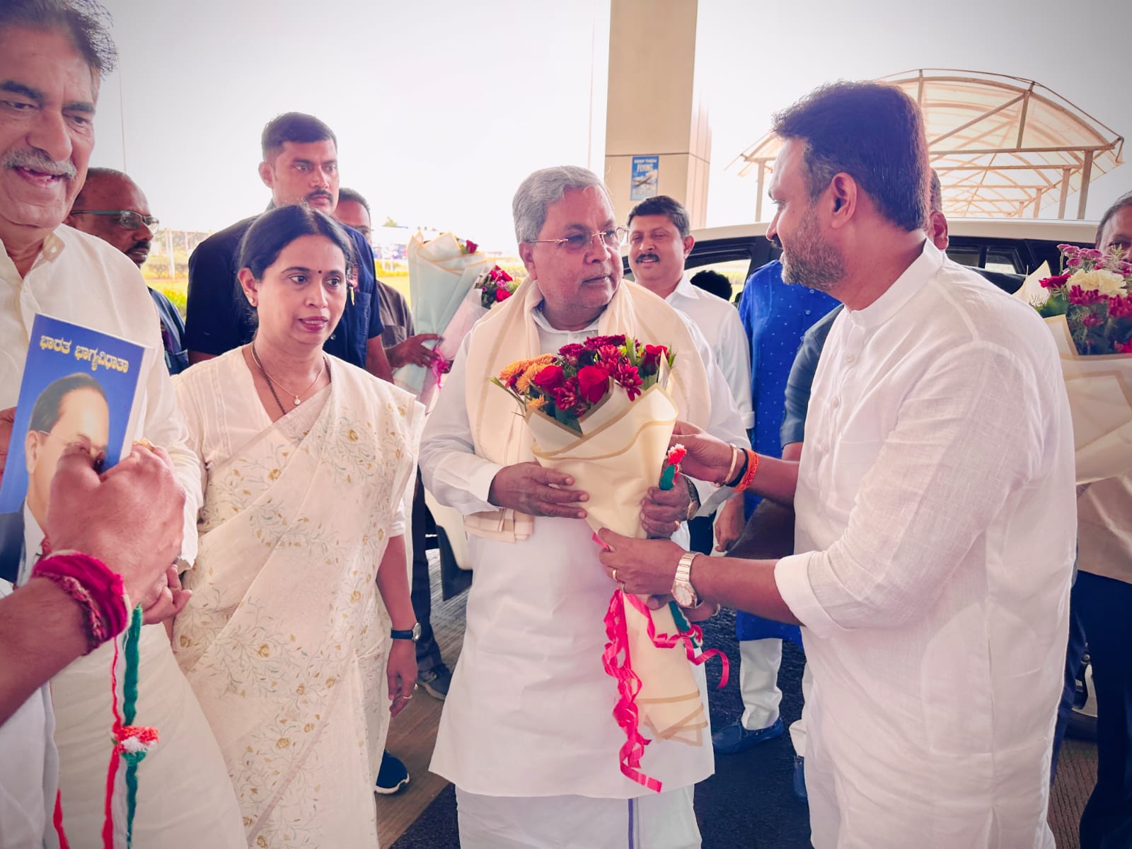 ವಿವಿಧ ಅಭಿವೃದ್ಧಿ ಕಾಮಗಾರಿಗಳ ಉದ್ಘಾಟನೆ ಹಾಗೂ ಬೆಳಗಾವಿ ವಿಭಾಗ ಮಟ್ಟದ ಕೃಷಿ ಇಲಾಖೆಯ ವಿವಿಧ ಸವಲತ್ತುಗಳ ವಿತರಣಾ ಸಮಾರಂಭಕ್ಕಾಗಿ ಬೆಳಗಾವಿಗೆ ಆಗಮಿಸಿದ ಮುಖ್ಯಮಂತ್ರಿ ಸಿದ್ದರಾಮಯ್ಯ ಅವರನ್ನು ಸಾಂಬ್ರಾ ವಿಮಾನ ನಿಲ್ದಾಣದಲ್ಲಿ ಮಹಿಳಾ ಮತ್ತು ಮಕ್ಕಳ ಅಭಿವೃದ್ಧಿ ಇಲಾಖೆ ಸಚಿವರಾದ ಲಕ್ಷ್ಮೀ ಹೆಬ್ಬಾಳಕರ್ ಅವರು ಸ್ವಾಗತಿಸಿದರು.