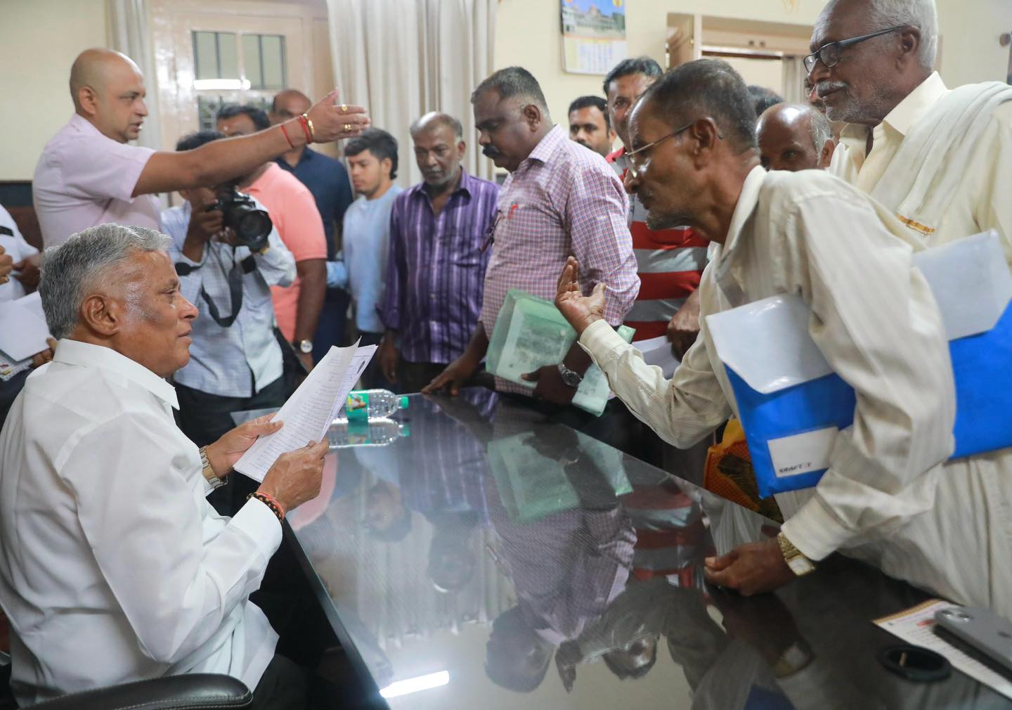 ತುಮಕೂರಿನ ಸಂಸದರ ಕಚೇರಿಯಲ್ಲಿ ಕೇಂದ್ರ ರೈಲ್ವೆ ಸಚಿವ ವಿ . ಸೋಮಣ್ಣಜನಸಂಪರ್ಕ ಸಭೆ ನಡೆಸಿದರು.