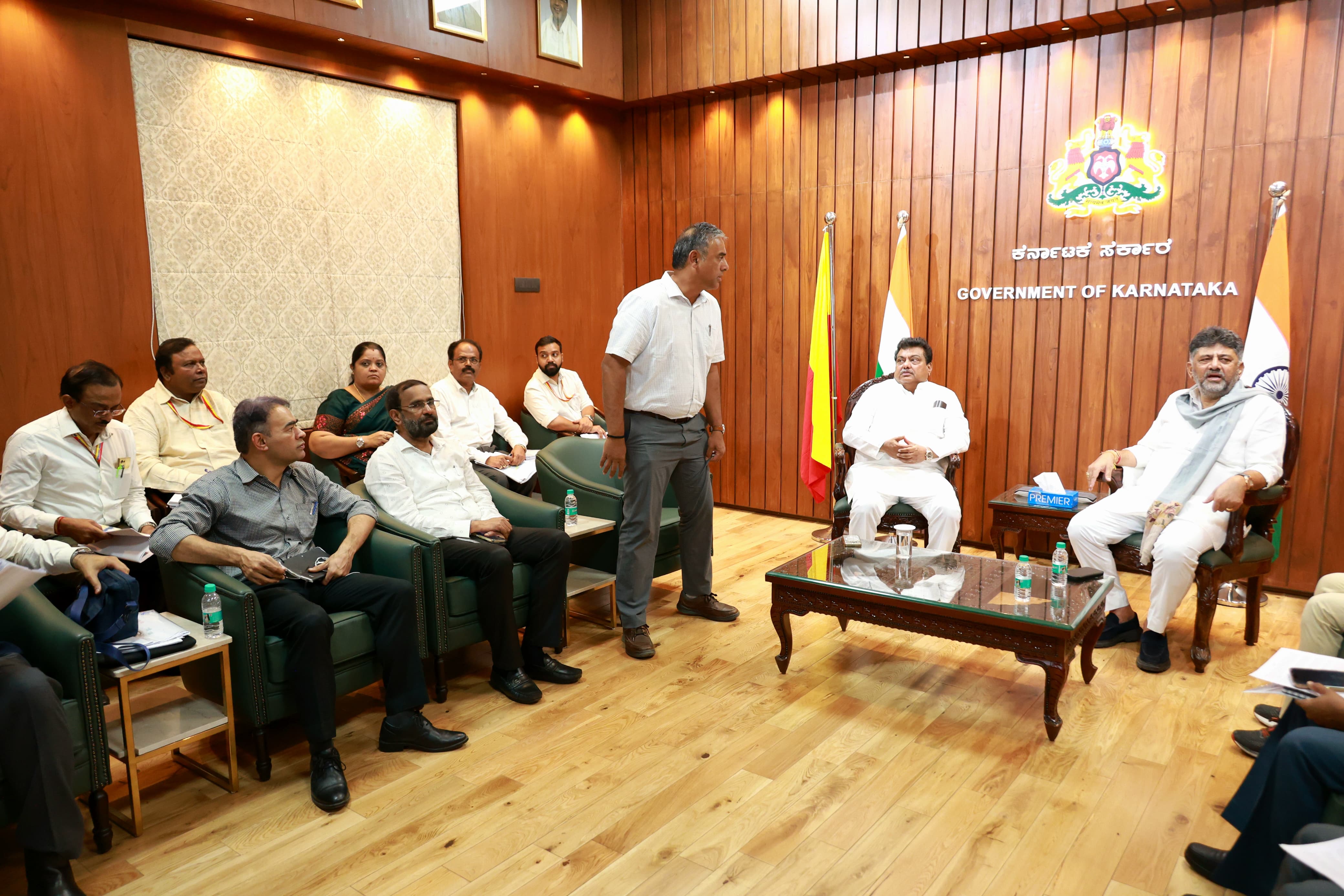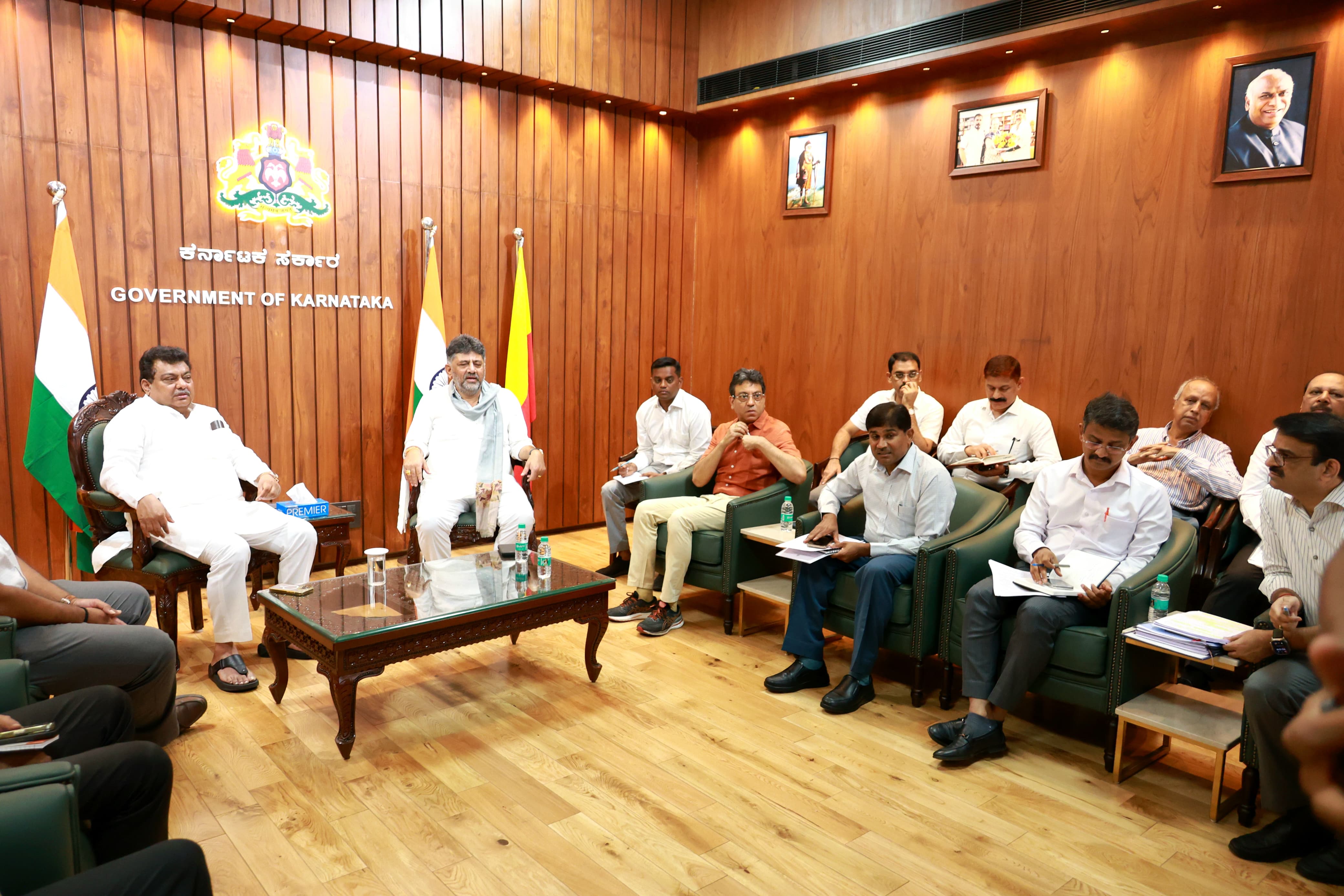 ಬೆಂಗಳೂರಿನಲ್ಲಿ ಮೆಟ್ರೋ, ಸುರಂಗ ರಸ್ತೆ, ರಸ್ತೆ ಸಾರಿಗೆ ಮತ್ತಿತರ ಸಾರ್ವಜನಿಕ ಉಪಯೋಗಿ ಯೋಜನೆಗಳ ವಿಸ್ತರಣೆ ಸಂಬಂಧ ಉಪ ಮುಖ್ಯಮಂತ್ರಿ ಡಿ.ಕೆ. ಶಿವಕುಮಾರ್ ಹಾಗೂ ಬೃಹತ್ ಕೈಗಾರಿಕೆ ಸಚಿವ ಎಂ.ಬಿ.ಪಾಟೀಲ್ ಅವರು ಅಧಿಕಾರಿಗಳ ಜತೆ ವಿಧಾನಸೌಧದಲ್ಲಿ ಸಮಾಲೋಚನೆ ನಡೆಸಿದರು.