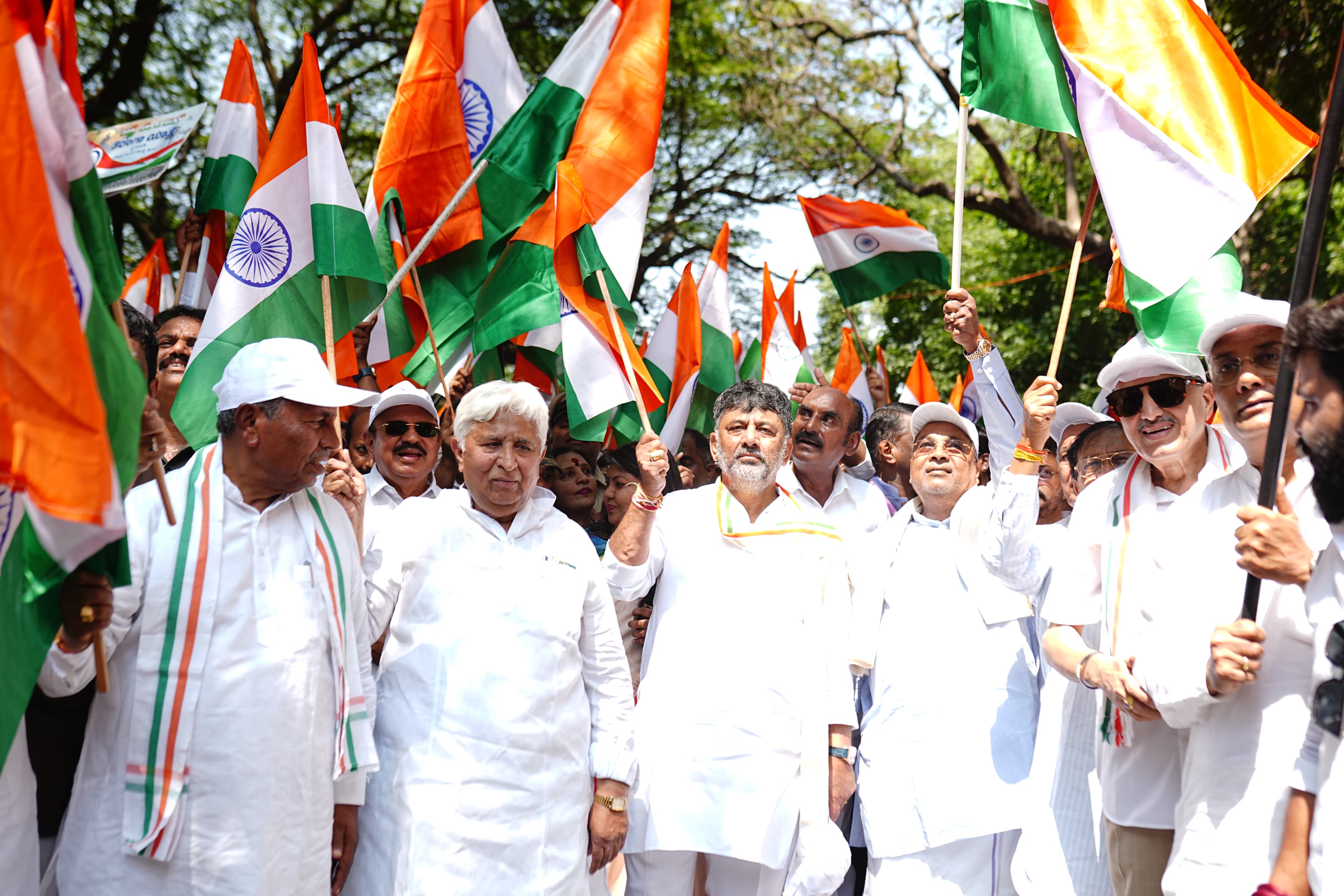 ಪಹಲ್ಗಮ್ ನರಮೇಧಕ್ಕೆ ಪ್ರತೀಕಾರವಾಗಿ ಆಪರೇಷನ್ ಸಿಂಧೂರ ಕಾರ್ಯಾಚರಣೆ ನಡೆಸುತ್ತಿರುವ ಭಾರತೀಯ ಸೇನೆಗೆ ಬೆಂಬಲ ವ್ಯಕ್ತಪಡಿಸಿ ಬೆಂಗಳೂರಿನ ಕೆ ಆರ್ ಸರ್ಕಲ್ ನಿಂದ ಮಿನ್ಸ್ಕ್ ಚೌಕದವರೆಗೆ ಸಿಎಂ ಸಿದ್ದರಾಮಯ್ಯ ಹಾಗೂ ಡಿಸಿಎಂ ಡಿ ಕೆ ಶಿವಕುಮಾರ್ ಅವರ ನೇತೃತ್ವದಲ್ಲಿ ಗುರುವಾರ
