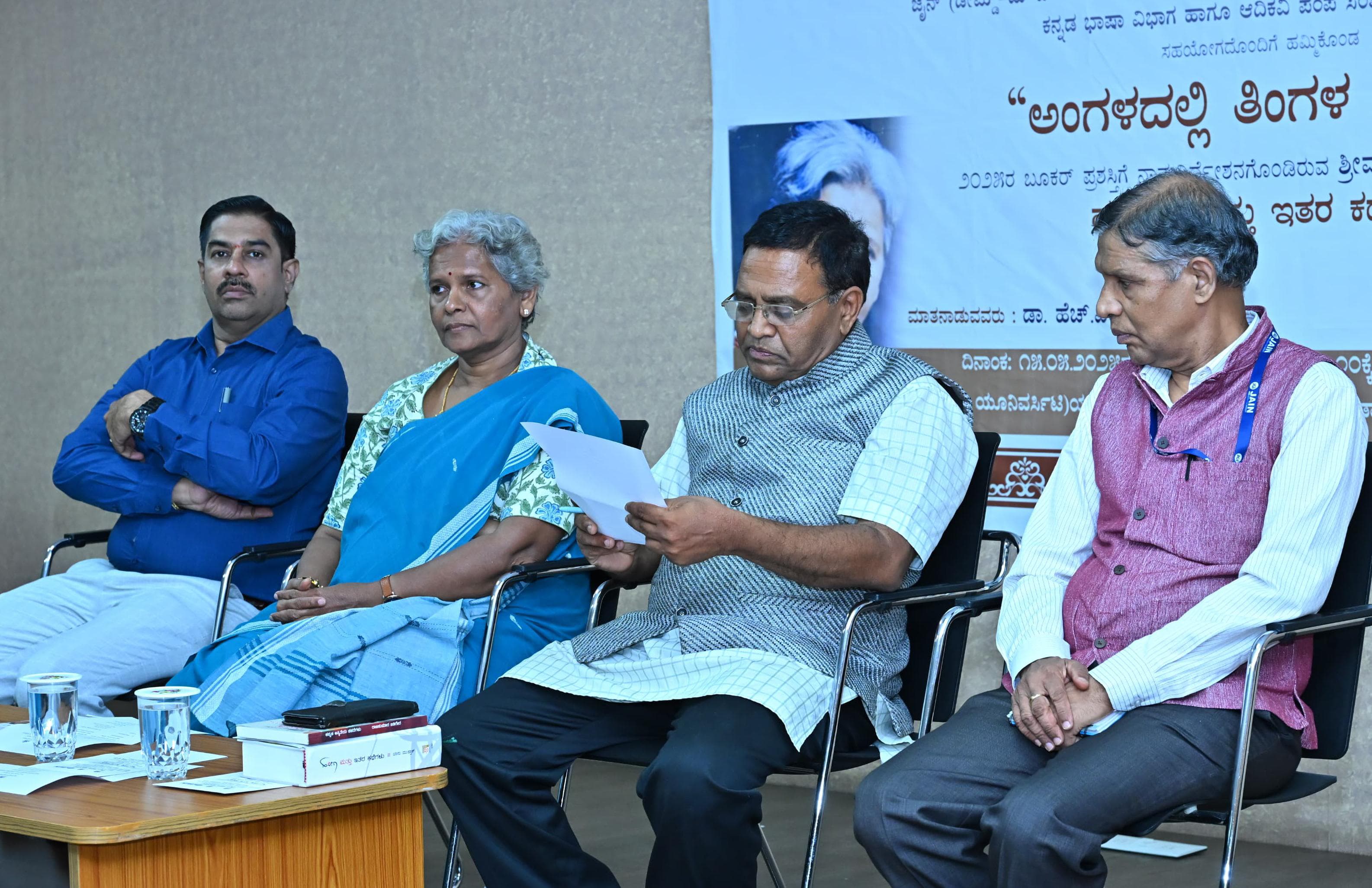 ಕನ್ನಡ ಪುಸ್ತಕ ಪ್ರಾಧಿಕಾರವು ಇಂದು ಜೈನ್ ಯುನಿವರ್ಸಿಟಿ. (ಡೀಮ್ಡ್-ಟು-ಬಿ-ಯೂನಿವರ್ಸಿಟಿ)ಯ, ಸ್ಕೂಲ್ ಆಫ್ ಕಾಮರ್ಸ್, ಸಿ ಎಸ್ & ಐ ಟಿ, ಎಸ್ ಎಚ್ & ಎಸ್ ಎಸ್ನ ಕನ್ನಡ ಭಾಷಾ ವಿಭಾಗ ಹಾಗೂ ಆದಿಕವಿ ಪಂಪ ಸಂಶೋಧನಾ ವೇದಿಕೆ ಇವರ ಸಹಯೋಗದೊಂದಿಗೆ “ಅಂಗಳದಲ್ಲಿ ತಿಂಗಳ ಪುಸ್ತಕ” ಯೋಜನೆಯಡಿ 2025ರ ಬೂಕರ್ ಪ್ರಶಸ್ತಿಗೆ ನಾಮನಿರ್ದೇಶನಗೊಂಡಿರುವ ಶ್ರೀಮತಿ ಬಾನು ಮುಷ್ತಾಕ್ ಅವರ “ಹಸೀನಾ ಮತ್ತು ಇತರ ಕಥೆಗಳು” ಕೃತಿ ಕುರಿತು ಕಾರ್ಯಕ್ರಮ ಆಯೋಜಿಸಲಾಗಿತ್ತು.