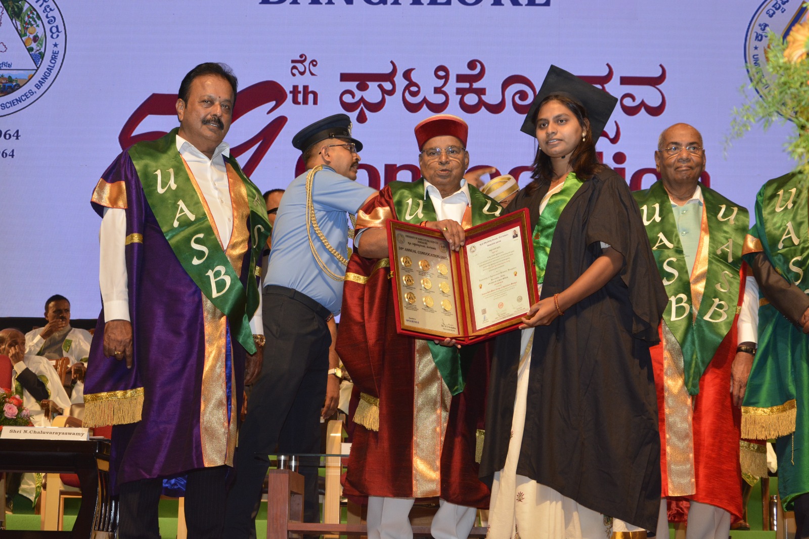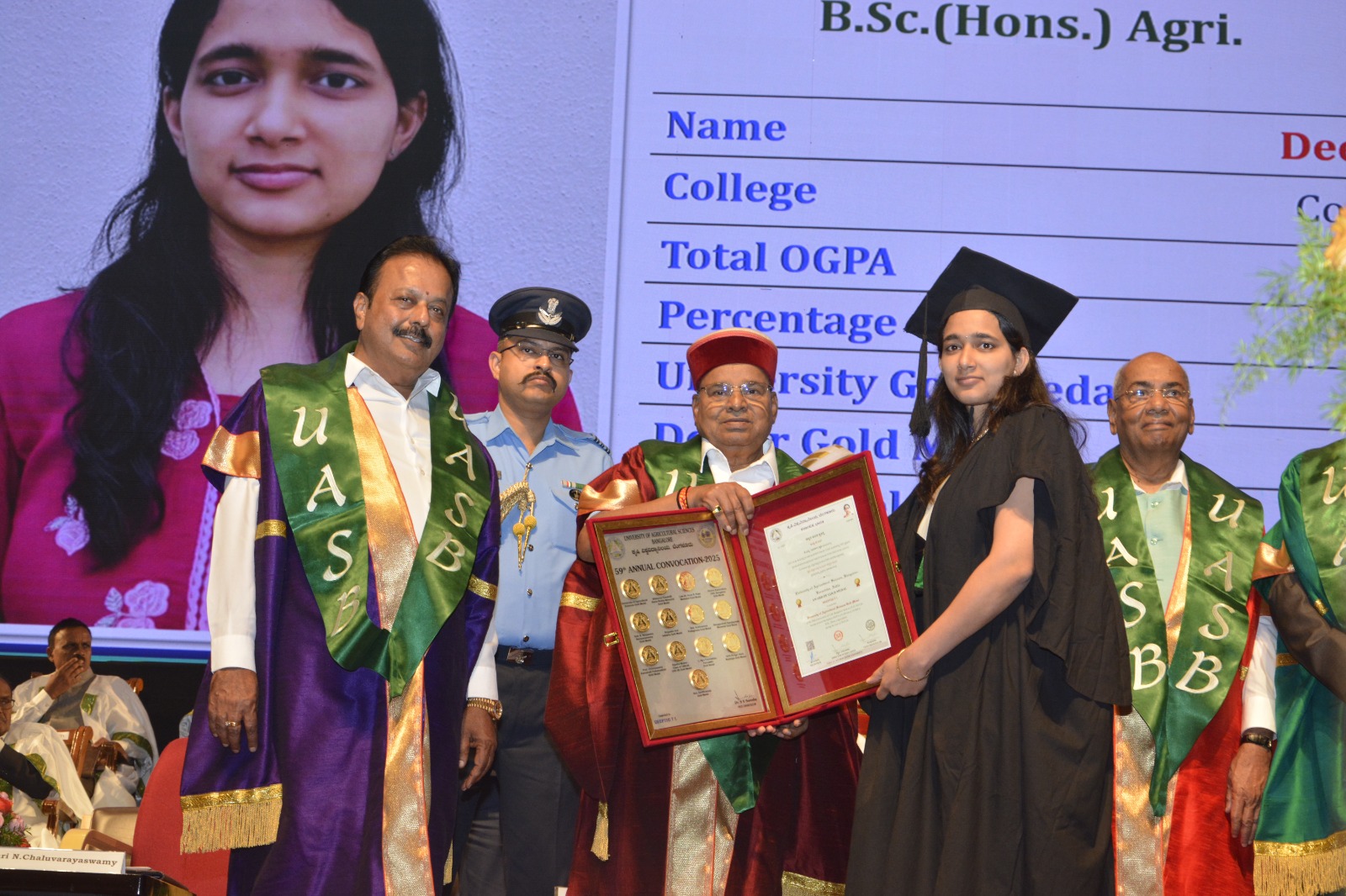 ಒಟ್ಟು 63 ವಿದ್ಯಾರ್ಥಿಗಳಿಗೆ ವಿಶ್ವವಿದ್ಯಾನಿಲಯದ 50 ಚಿನ್ನದ ಪದಕಗಳನ್ನು, 76 ದಾನಿಗಳ ಚಿನ್ನದ ಪದಕಗಳನ್ನು (50+76=126) ಹಾಗೂ 24 ದಾನಿಗಳ ಚಿನ್ನದ ಪದಕ ಪ್ರಶಸ್ತಿ ಪ್ರಮಾಣ ಪತ್ರಗಳನ್ನು ವಿತರಿಸಲಾಯಿತು. ಬಿ.ಎಸ್ಸಿ (ಆನರ್ಸ್), ಕೃಷಿ ಪದವಿಯಲ್ಲಿ ಕೃಷಿ ಕಾಲೇಜು, ಜಿಕೆವಿಕೆ, ಬೆಂಗಳೂರಿನ ವಿದ್ಯಾರ್ಥಿನಿಯಾದ ಕುಮಾರಿ. ದೀಪ್ತಿ ಟಿ ಎಲ್ ಅತಿ ಹೆಚ್ಚು ಅಂದರೆ 13 ಚಿನ್ನದ ಪದಕಗಳು ಹಾಗೂ 4 ದಾನಿಗಳ ಪ್ರಮಾಣ ಪತ್ರಗಳನ್ನು ಪಡೆದುಕೊಂಡಿದ್ದಾರೆ.