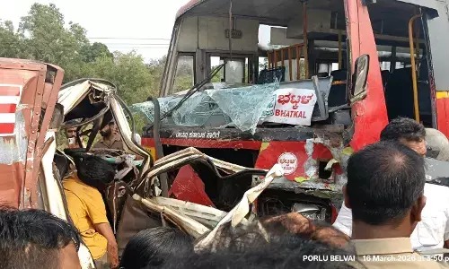 ಮೂಡುಬಿದಿರೆಯಿಂದ ಕಾರ್ಕಳ ಕಡೆಗೆ ಸಾಗುತ್ತಿದ್ದ ಕೆಎಸ್ಆರ್ಟಿಸಿ ಬಸ್ ವಿರುದ್ಧ ದಿಕ್ಕಿನಲ್ಲಿ ಬಂದು ಕಾರ್ಕಳ ಕಡೆಯಿಂದ ಮೂಡುಬಿದಿರೆ ಕಡೆಗೆ ಬರುತ್ತಿದ್ದ ಮಿನಿ ಗೂಡ್ಸ್ ಟೆಂಪೋಗೆ ಡಿಕ್ಕಿ ಹೊಡೆದಿದೆ.